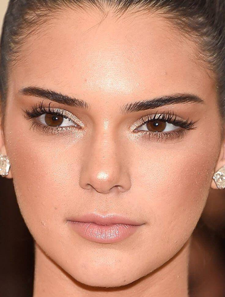 Нанося декоративную косметику, Дженнер предпочитает минимализм. Ее кожа сияет от природы, и не требует нанесения тяжелых тональных основ. В основном модель останавливается на ВВ-креме со светоотражающими частицами и матовыми текстурами.