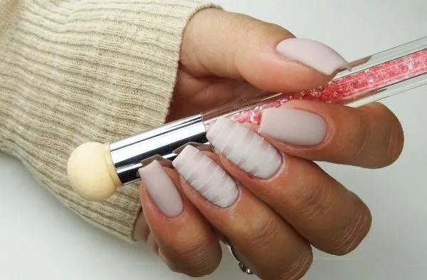 Это обусловлено тем, что аэропуффинг выполняется только на матовой основе. На гладкой поверхности гель-паста не будет смотреться так эффектно из-за специфичности структуры спонжа (его пористости).