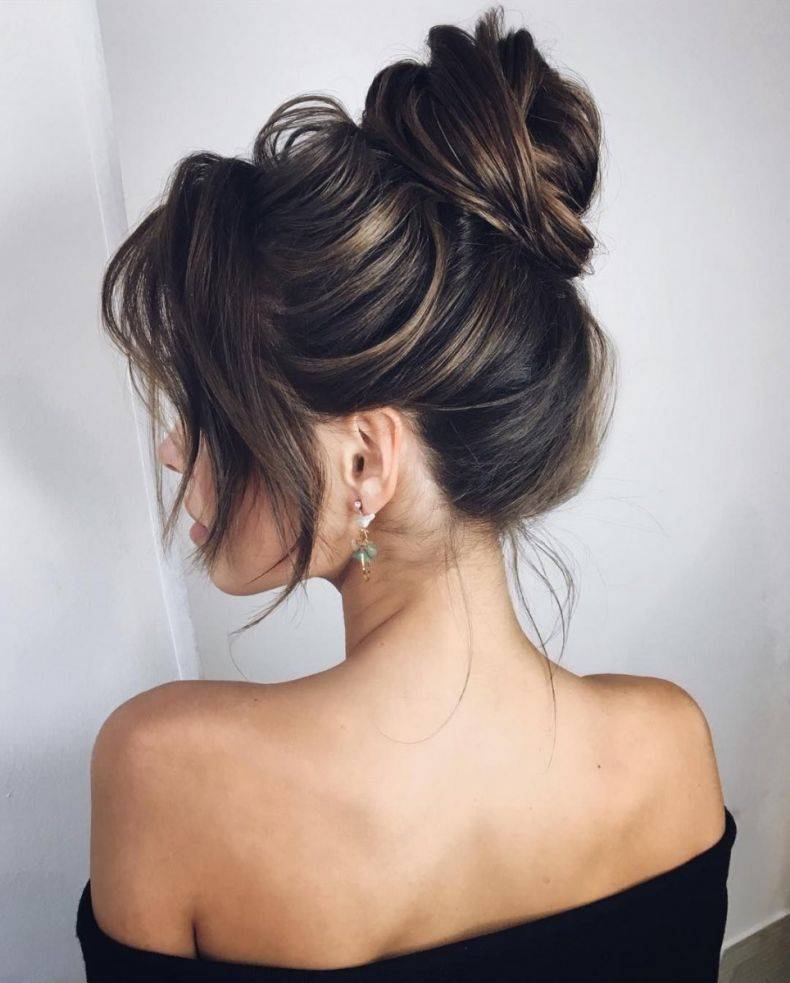 Весь секрет такой прически кроется в отдельно уложенных прядях, эффектном объеме и надежной фиксации. В основе ее технике лежит полная импровизация, вы можете накручивать пучок как душе угодно. Проще всего воспользоваться специальным валиком для объема, а потом вокруг него формировать красоту из отдельных прядок.