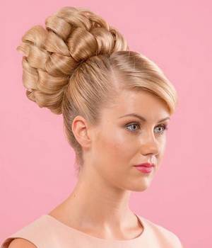 Данная укладка позволяет сделать высокую прическу как на длинных волосах, так и на средних. Она отлично подходит для любых торжественных мероприятий.