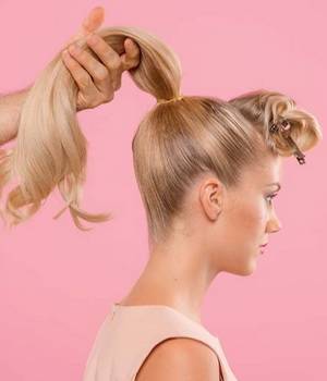 - требует использования стайлинговых средств, начеса, невидимок, шпилек, что негативно сказывается на структуре локонов;