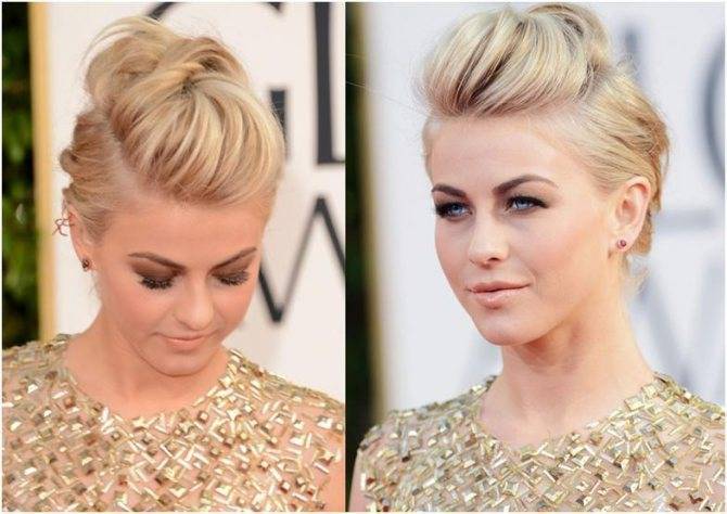 Вечерний способ укладки коротких волос с начесом и челкой на бок