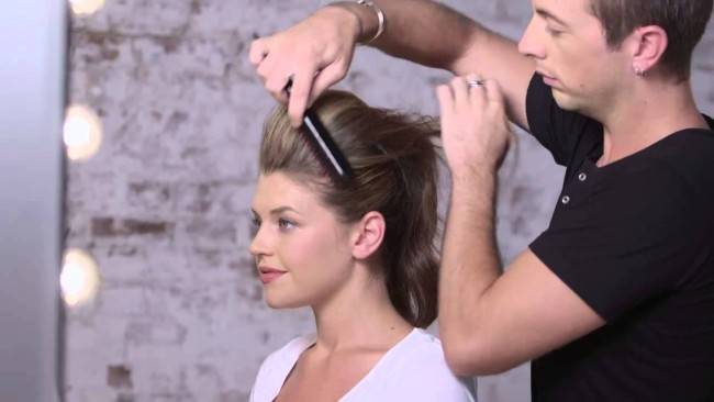 - Придать начесу форму, зафиксировать лаком. Пряди необходимо аккуратно сглаживать назад по росту шевелюры тонкой ручкой расчески.