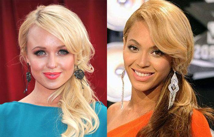 Хвост не обязательно делать прямой. Необычно смотрится расположение волос сбоку. Такой вариант удачно дополняют локонами. От высокого начеса лучше отказаться. Легкий объем, несколько свободных прядей, выпущенных у лица создадут броский образ.