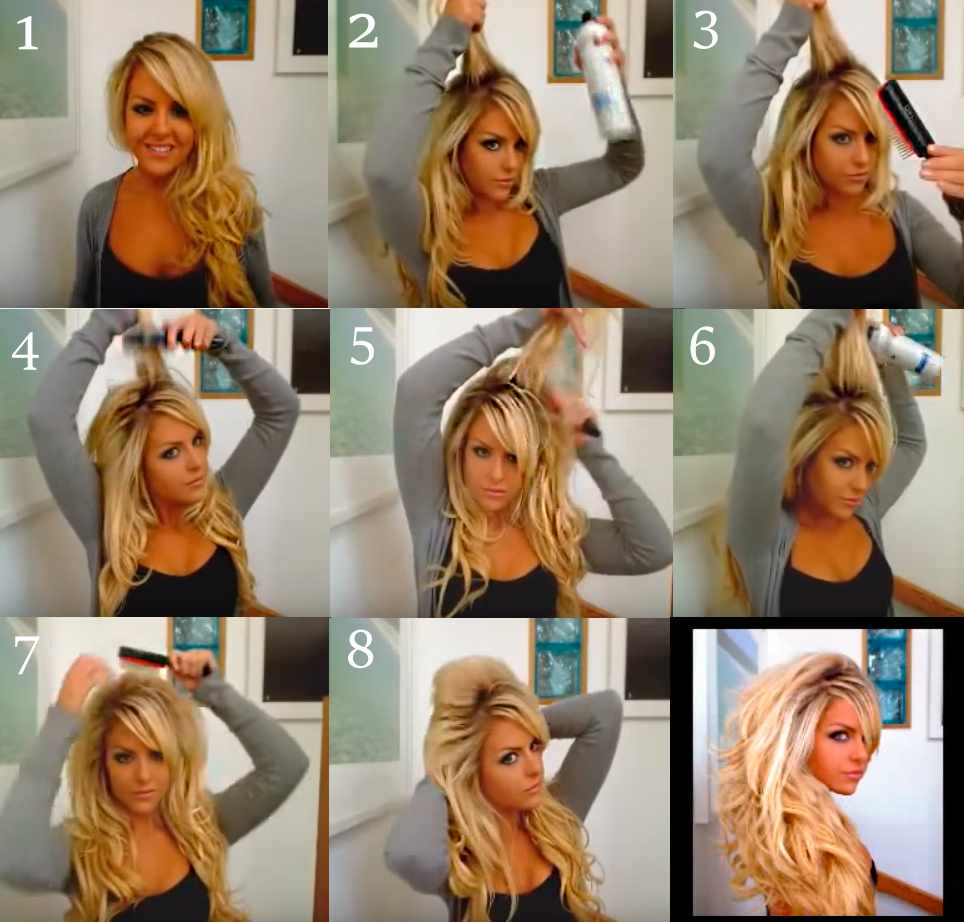 Для такой укладки подойдет только тупировка, так как обычный начес нарушит красоту локона. Начинайте с нижних прядей, каждый локон тупируется отдельно. После того как начешите зафиксируйте лаком. Для более естественного эффекта слегка взбейте руками шевелюру.