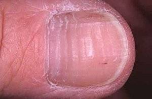 Внимание! Изменение здоровых ногтей без явных внешних причин говорит о внутренней патологии, появившейся приблизительно за полгода — в течение этого времени отрастает новый ноготь.