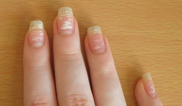 - Небрежный маникюр, во время которого повреждается внешний или даже глубокий слой пластины.