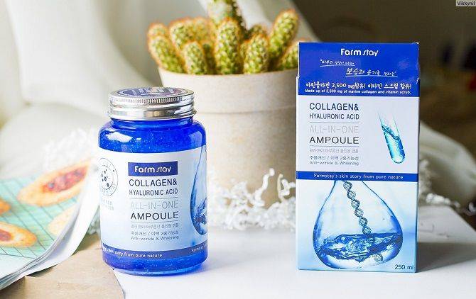 - FarmStay All-In-One. Инновация корейского производства. Содержит гиалуроновую кислоту и коллаген. Повышение тонуса кожи, эффективное увлажнение и борьба со старением – основные свойства этой сыворотки.