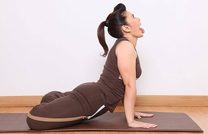 - Симхасана. Займите сидячее положение, расположившись на коленях. Сделайте глубокий вдох, а на выдохе широко откройте рот и высуньте язык, при этом максимально напрягая все тело. Находиться в данном положении надо около 2 мин. Принимая эту позу, напрягают все лицевые и грудные мышцы, а также позвоночник. Подходит для желающих избавиться от второго подбородка.