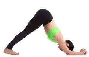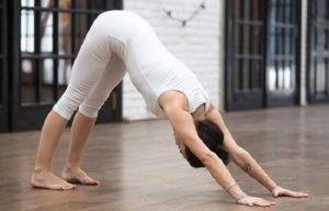 - Адхо Мукха Шванасана. Эта асана требует перемещения веса всей верхней половины тела только на руки, в результате чего можно быстро укрепить бицепсы и избавиться от лишних килограмм. При этом надо соблюдать спокойное и ровное дыхание.