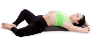Лягте на согнутую левую ногу и расслабьтесь. Руки можно положить под голову.