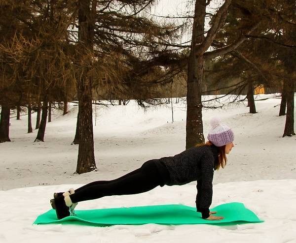 - Чатуранга Дандасана. При выполнении нужно поддерживать тело лишь за счет рук, обеспечивая себе дополнительный упор пальцами ног. Это не только повышает тонус верхних конечностей, но и весьма способствует развитию бицепсов и трицепсов. Выдержать в течение нескольких дыхательных циклов. Для достижения быстрого результата асана может выполняться и в домашних условиях.