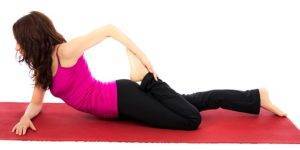 7. Раджакапотасана. Асана не только тонизирует мышцы бедер, но и обеспечивает сильную растяжку ног, позвоночника. В процессе выполнения следует выдерживать ровное дыхание, оставаясь в позе комфортное время. Ноги попеременно меняются.