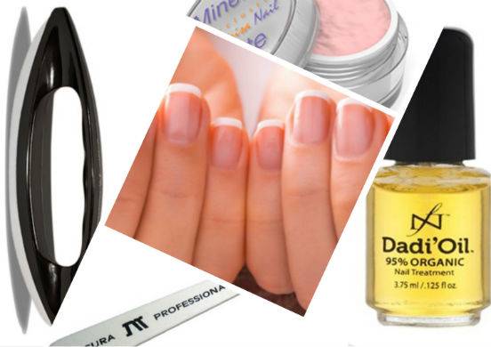 - Маникюр с применением инструментария из натуральных составляющих. На этой стадии выполнения процедуры ногтевая пластина обрабатывается особого состава минеральной пастой, а затем шлифуется натуральными блоками для полировки.