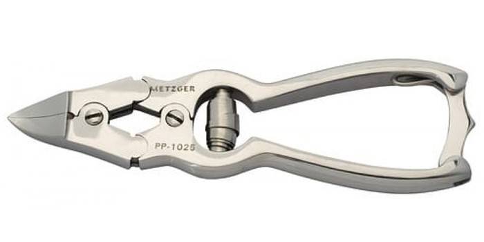 Профессиональные немецкие педикюрные щипцы имеют удобную форму. Рукоятки можно зафиксировать специальной защелкой. В сложенном положении инструмент легко умещается в косметичке. Качественная односторонняя заточка скругленного лезвия не повреждает структуру ногтя и кожи вокруг места среза.