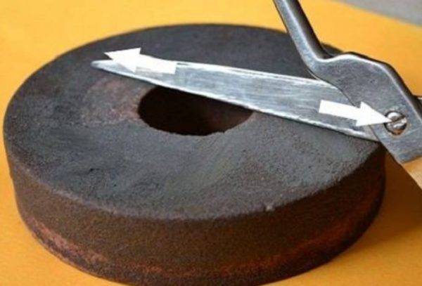 Чтобы не испортить инструмент, нельзя обтачивать его внутреннюю сторону. Работают только с внешней поверхностью. В конце работы его протирают ветошью.