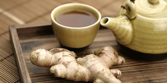 - сушенный корень имбиря добавляют в листики, заливают кипятком и оставляют наставиться;