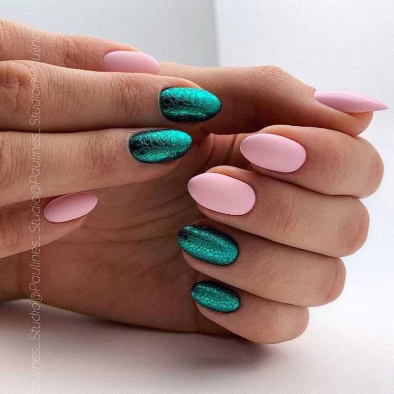 Не рекомендуется использовать чистый зеленый в своих нейл-артах. Присмотритесь к многочисленным оттенкам: хаки, яркий лайм, весенний, ультра-зеленый, малахит, нефрит, оливковый и т.д. Это цвета отлично смотрятся в матовой и глянцевой текстуре, присутствуют в маникюре «кошачий глаз».