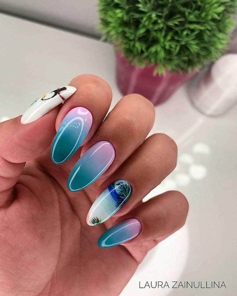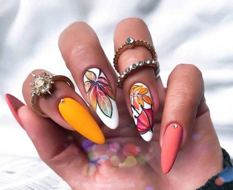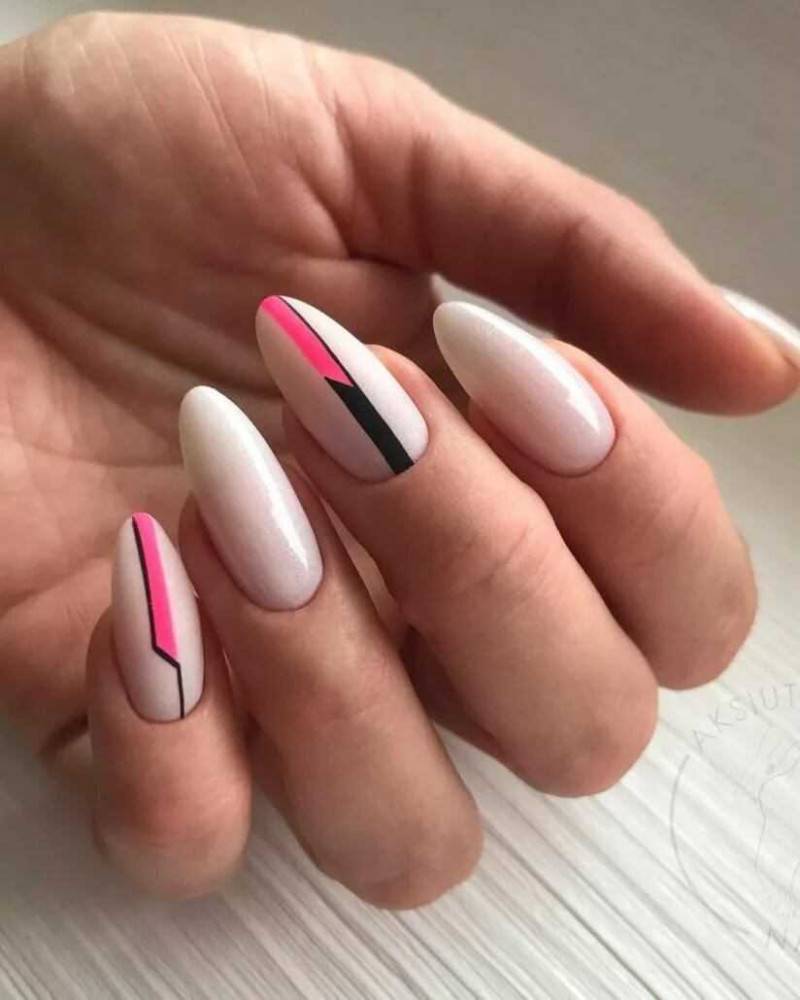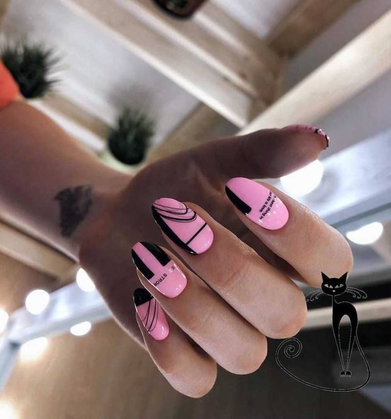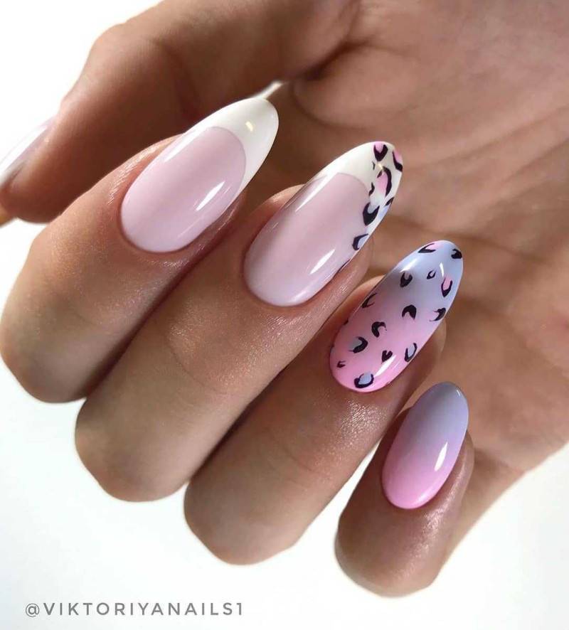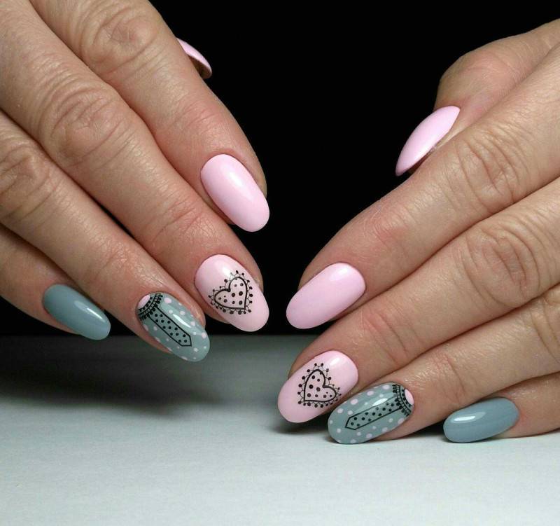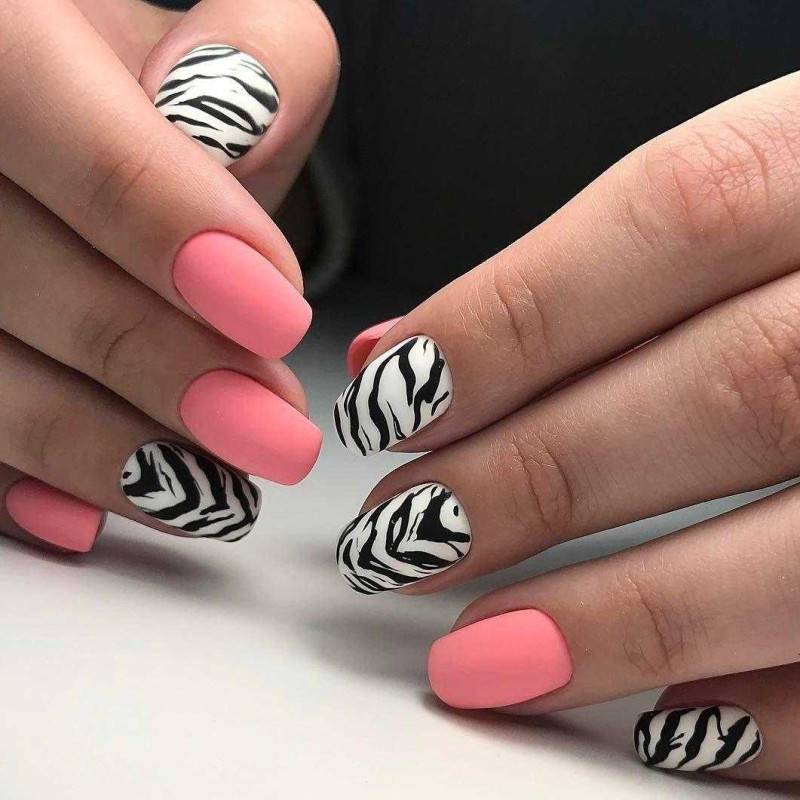 Пастельный и неоновый маникюр — можно выбирать любые комбинации. Главное — чтобы сам оттенок был подходящим для формы. Геометрические узоры любых разновидностей тоже смотрятся привлекательно.