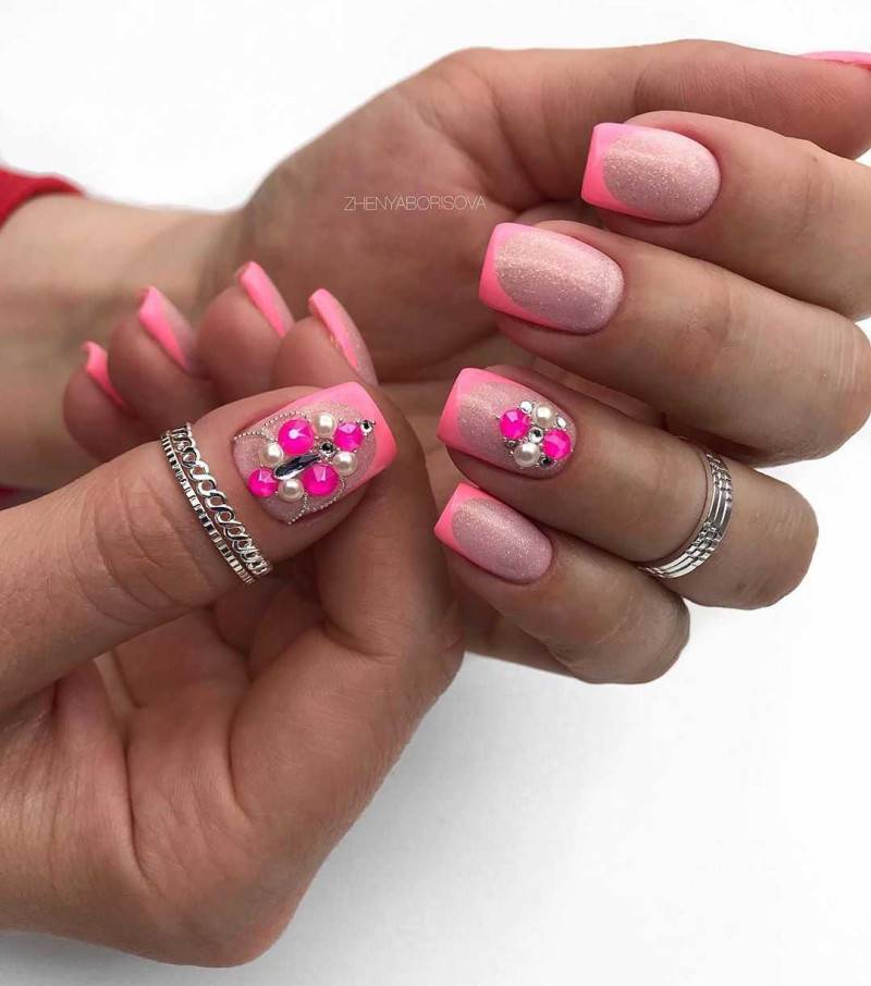 Французский маникюр уже успел стать классикой, он остается в тренде и вряд ли выйдет. Но как французский маникюр приукрасить в 2020 году? Стразы — наше все! Декор при помощи страз всегда подает ваши ручки в выигрышном положении. Цветной френч сегодня мало кого удивляет. В новом году палитра оттенков, для данного вида декора, значительно расширилась.