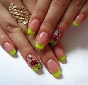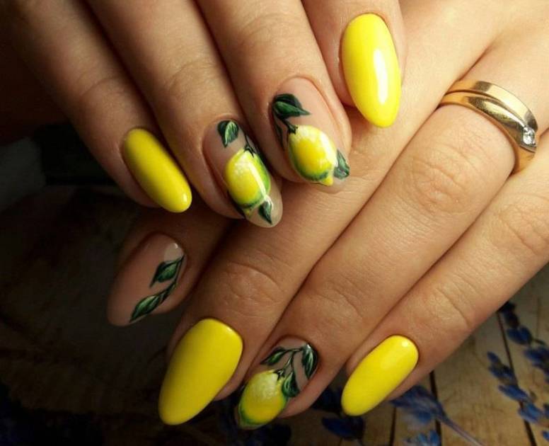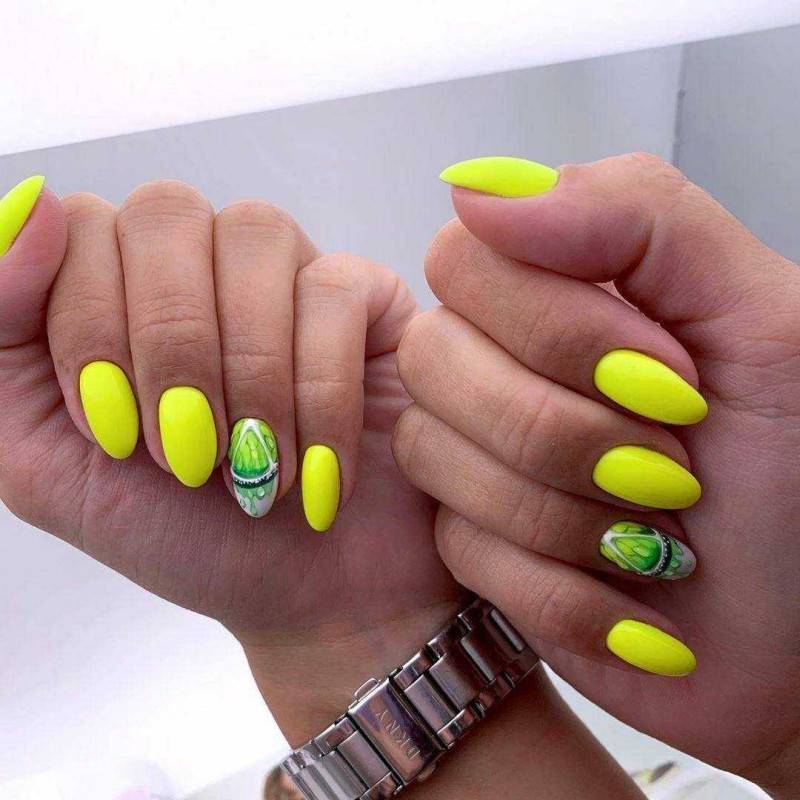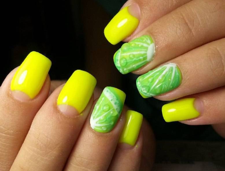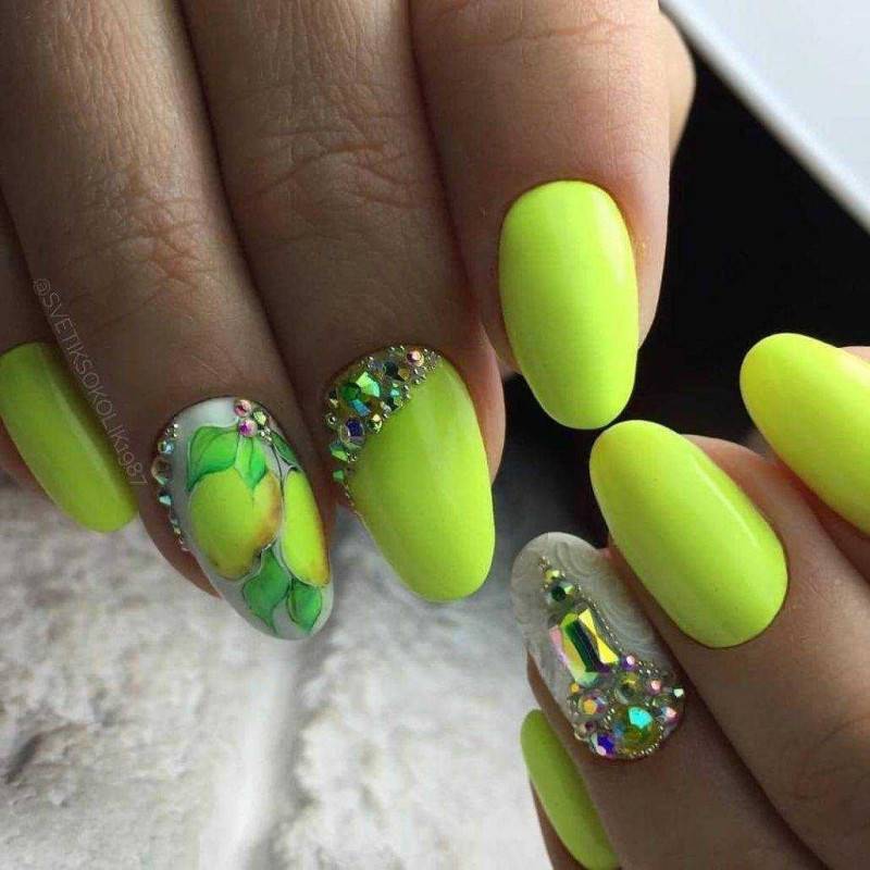 Зеленый придает больше весеннего настроения, но и летнее можно создать, например, нарисовав аппетитный и сочный лайм на парочке ногтей.