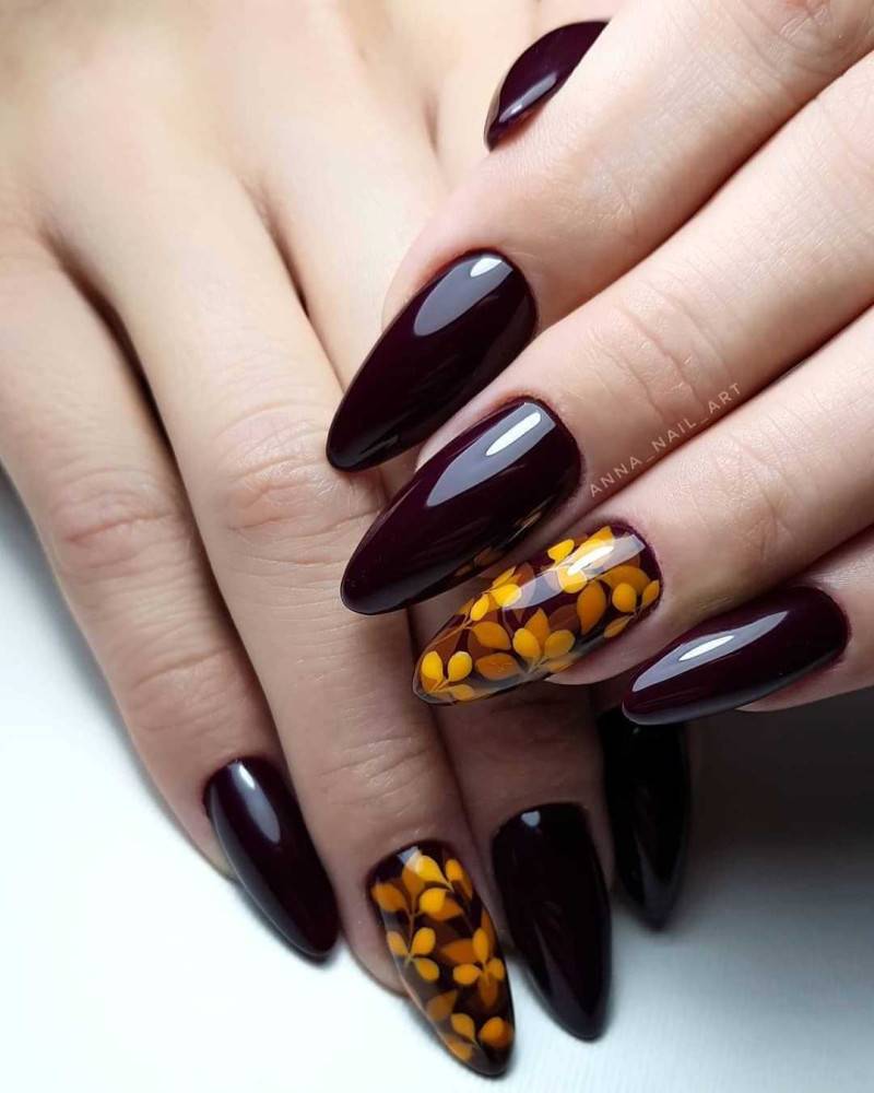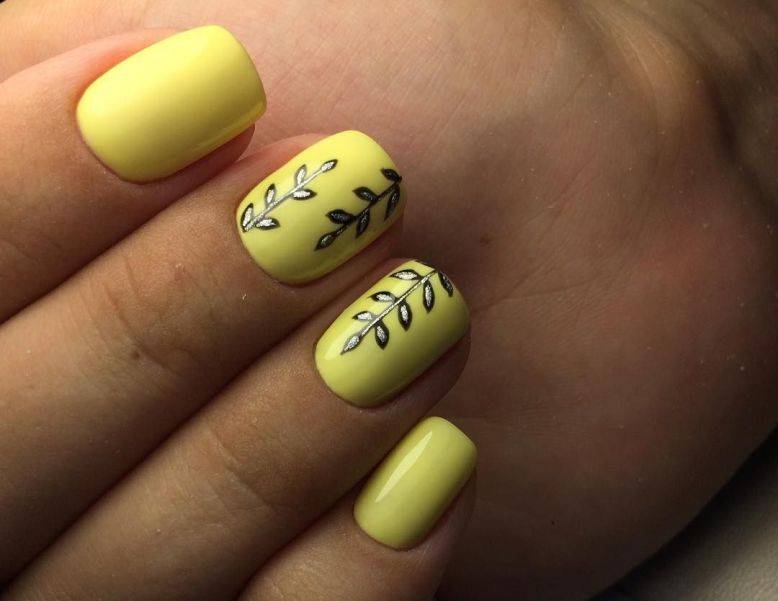 Простые веточки и цветочки черным гель-лаком или в виде слайдеров будут очень популярны этим летом. Всем известно, что черный и желтый — это одно из самых красивых, стильных и удачных цветовых сочетаний. Не нужно ничего мудрить. Стиль кроется в простоте.