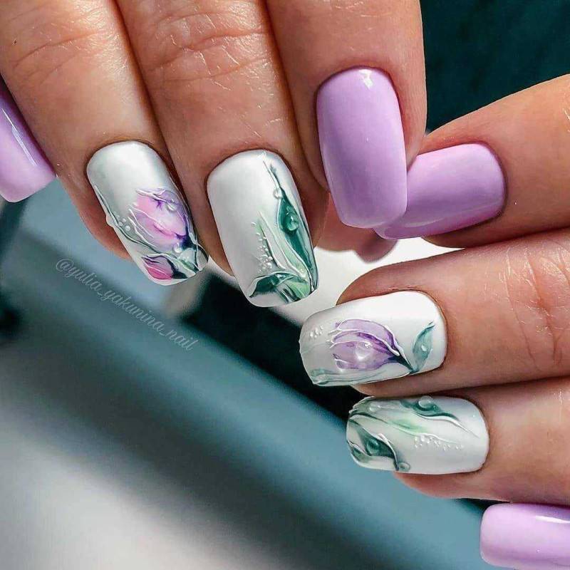 Помимо представленных оттенков популярностью пользуется белый однотонный маникюр, бордовый маникюр, дизайн в фиолетовых тонах. Тренд 2020 года – сочетание сразу нескольких оттенков, поэтому присмотритесь к разноцветным и градиентным нейл-артам.