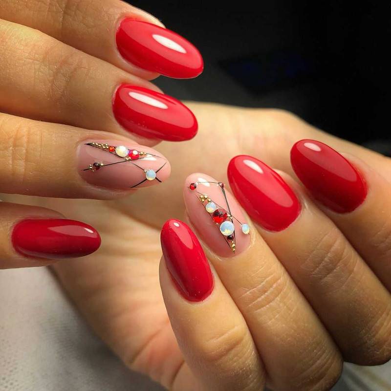 Стразы могут дополнить дизайн, могут выступить сами в роли акцента. Легкий акцент на уровне минимализма – стразик в зоне лунулы или серьезное заявление о себе – весь ноготок выложен стразами. Тут уже все зависит от ваших желаний.