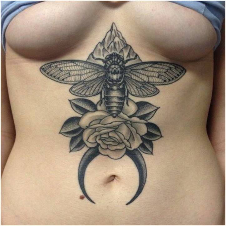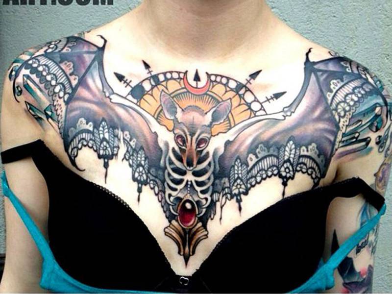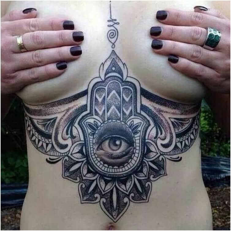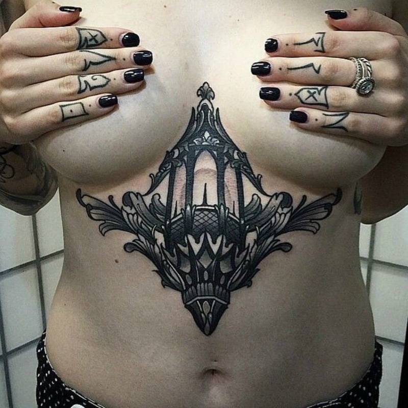 Татуировки под грудиной, под грудью, на груди для девушек и их значение