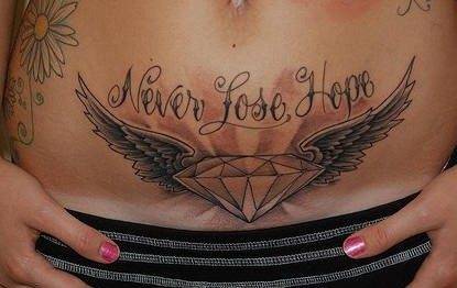 Так же эротическое изображение на животе стало спасением девушек, имеющих некрасивый после операционный шрам. Обычно украшают живот цветочным орнаментом.