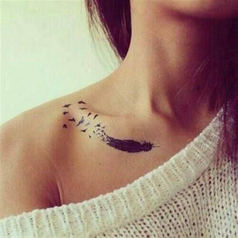 Татуировки на ключице для девушек: надписи, перья, ласточка и их значение