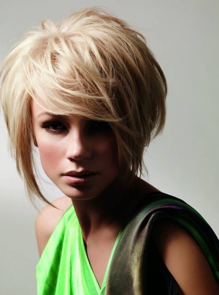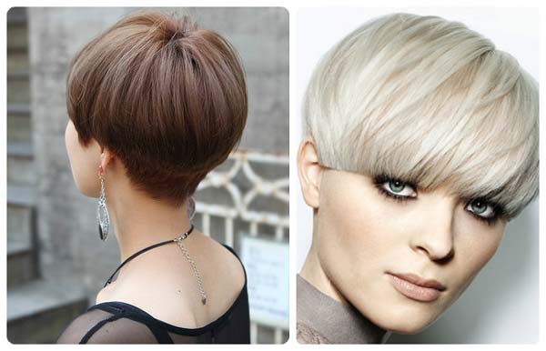 «Изюминкой» является то, что на затылке пряди состригаются с градацией. Такой вариант поможет скрыть угловатость формы лица или острые черты. Градуированную стрижку можно дополнить ровной или же короткой косой челкой. Укладка такой прически не займет слишком много времени. Потребуется только создать легкий беспорядок на голове при помощи воска для укладки, либо – использовать пенку для укладки в сочетании с лаком сильной фиксации.