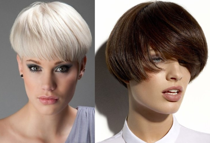 - короткая длина, ежик сзади, четкие линии по бокам в комбинации с прямой густой челкой;