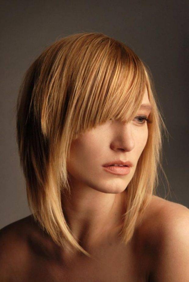Она может мягко переходить в передние пряди или иметь четкую линию бокового среза. Стрижка подходит девушкам с удлиненным овалом лица, тонкой шеей, мягкой линией нижней челюсти. Для круглолицых женщин это неудачный вариант, так как средняя и нижняя треть визуально станут еще шире.