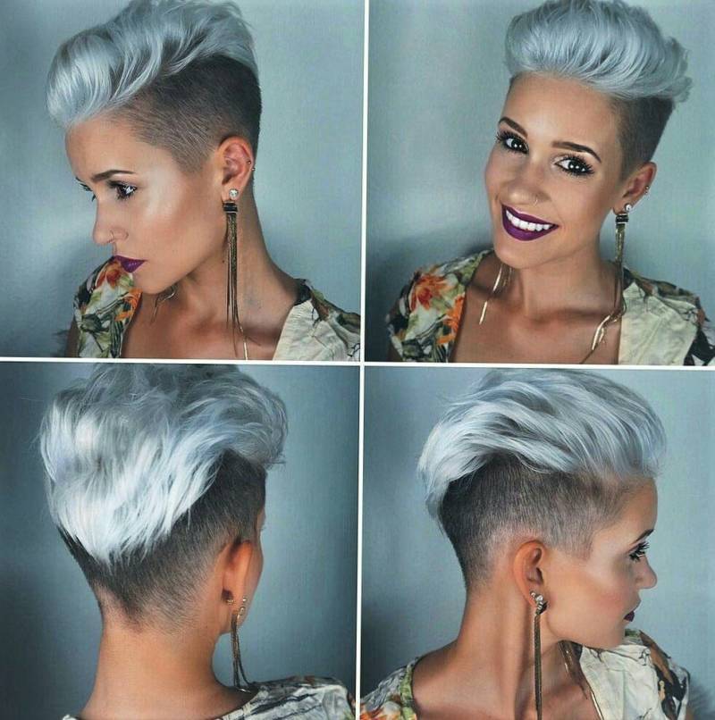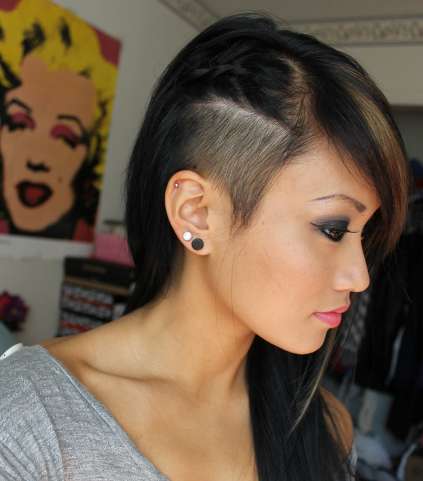 - выбриты оба виска. Такой вид стилисты рекомендуют лишь для обладательниц коротких волос, на длинных прядях эта стрижка будет выглядеть нелепо. Можно также выбривать затылок, подбирая локоны на макушке, но даже если манипуляции проделывались лишь с висками, такая стрижка не оставит никого равнодушным. При выборе причёски стоит продумать, как будут лежать волосы на затылке, ведь растрёпанные пряди в укладке выглядят некрасиво;