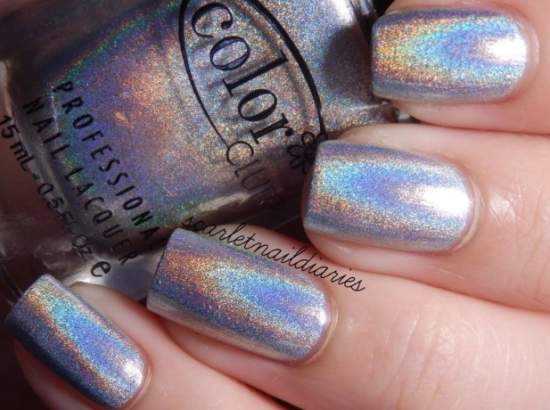 Затем следует этап окрашивания в тон, совпадающий с оттенком отражающей пленки. Наносить лак следует особо тщательно и аккуратно, так как любая неровность будет заметна под фольгой. Отражающую пленку следует вырезать индивидуально по форме каждой ногтевой пластины.