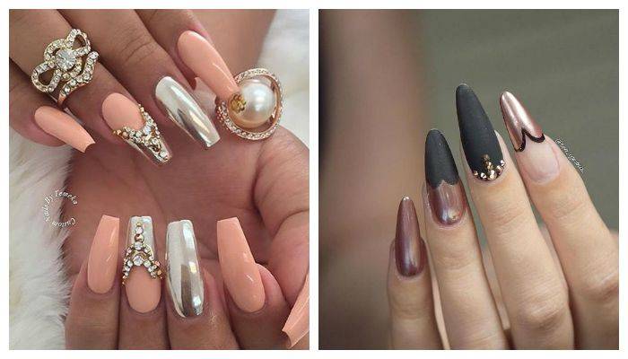Потому молодежные вечеринки, ночные клубы, концерты звезд эстрады, встречи с друзьями – это идеальное место для демонстрации ногтей с эффектом металла. Представили себя в образе?