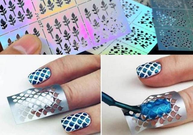 В нейл-арте также используют самоклеящиеся трафареты для создания четкого рисунка: