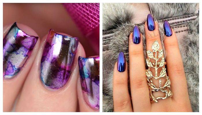 Существует большое количество способов сделать свои ноготки неповторимыми, придав им зеркальный эффект. Рассмотрим самые популярные способы выполнения этой техники.