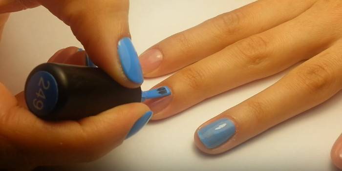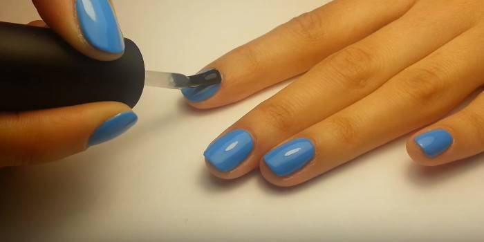 - На предварительно подготовленные ногти нанести лак/гель лак, хорошо высушить;
