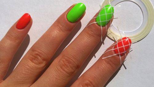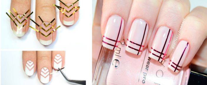 Техника выполнение маникюра с использованием маникюрной ленты в качестве трафарета достаточно проста: