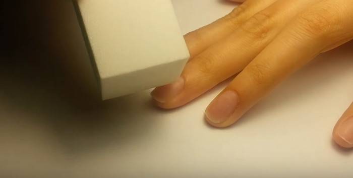 Первым делом нужно слегка пройтись по ногтевой пластине бафом, чтобы придать необходимую шероховатость. Сильно можно не усердствовать, чтобы не повредить ноготь.
