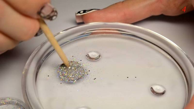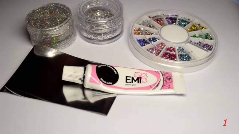 Как крепить стразы, вы уже знаете, поэтому подробнее остановимся на выполнении легкой растяжки блестками.