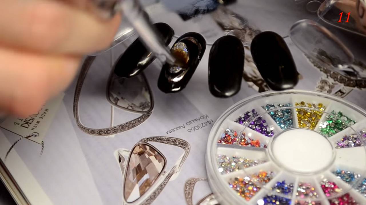 Чтобы подобный дизайн долго радовал свою обладательницу, камни на ногтях нужно хорошо укрепить.