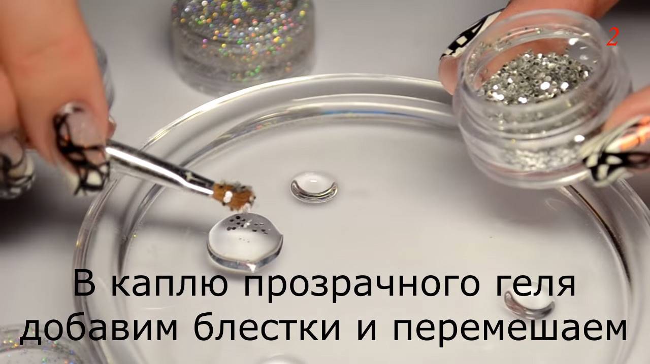 Помимо этого можно использовать гель для финишного покрытия. Это создаст эффект того, будто камни под стеклом. Также для этой цели разрешается покрытие гелем-лаком, правда, как уже говорилось, после этого необходима тщательная просушка.