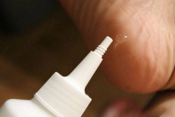 На участки с огрубевшей кожей, мозолями и натоптышами нанести при помощи ватных тампонов гель, прикрыть обработанные места пленкой или поместить стопу в пакет и выдержать несколько минут. Чем толще загрубевший слой кожи, тем дольше нужно держать средство.