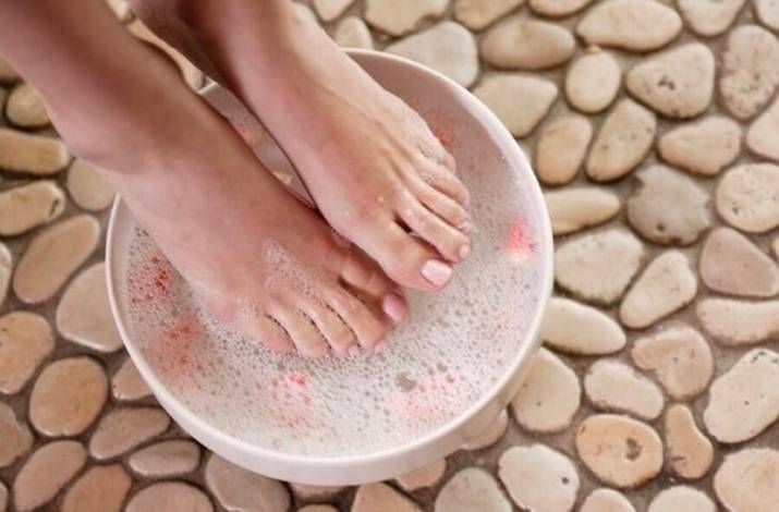 На стопах не должно быть каких-либо ран, потертостей или порезов. Сначала нужно размягчить кожу стоп, поместив ноги в таз с водой на 4-5 мин.