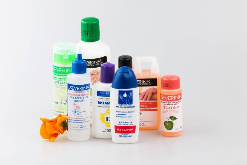 Российская фирма “Severina”специализируется на выпуске средств для снятия лака, гель-лака и биогеля. У нее широкий выбор продукции на все случаи жизни: жидкости и гели, бутыльки с минимальным и большим объемом. У фирмы есть средства без ацетона с природными маслами