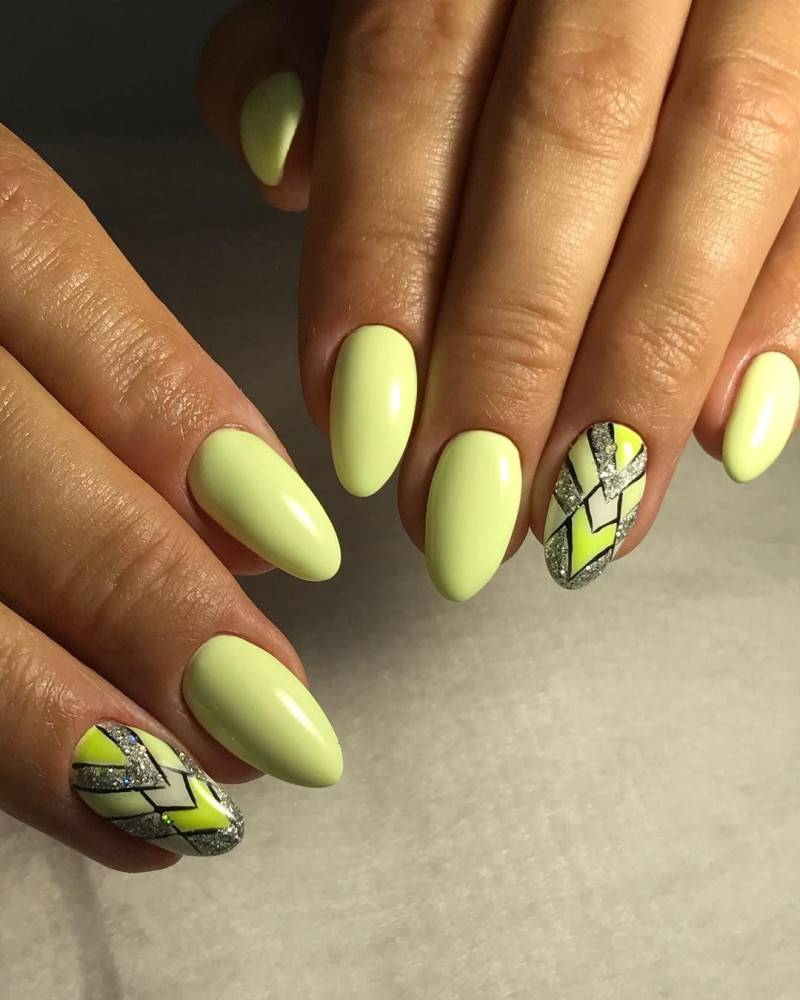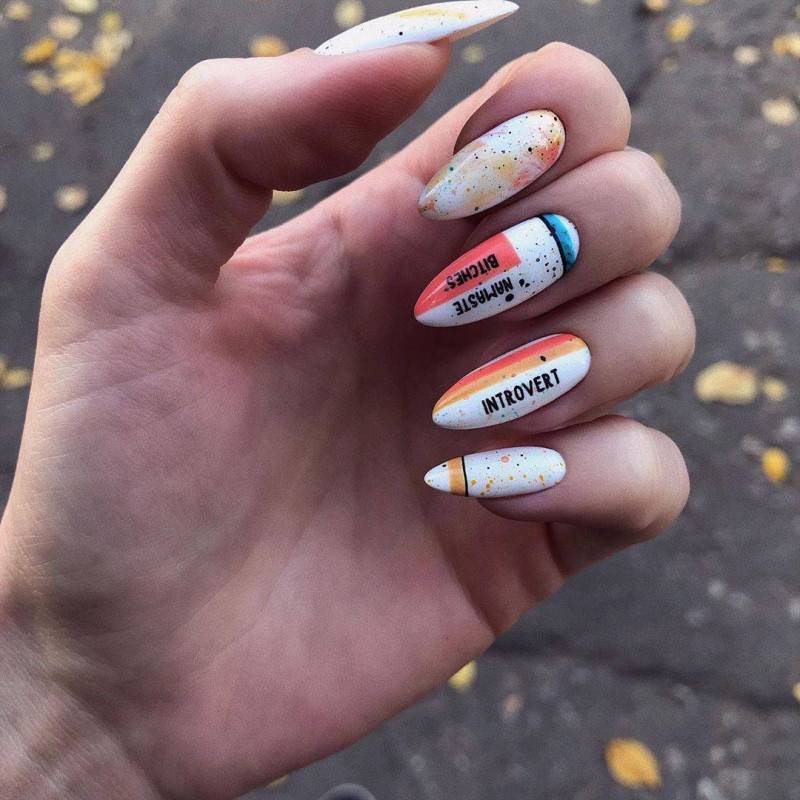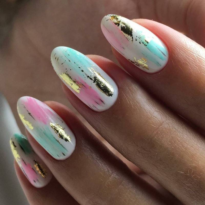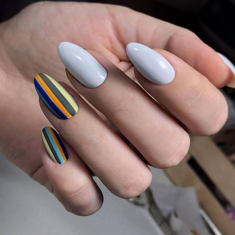 Разноцветный маникюр: тренды на форму миндаль 2023