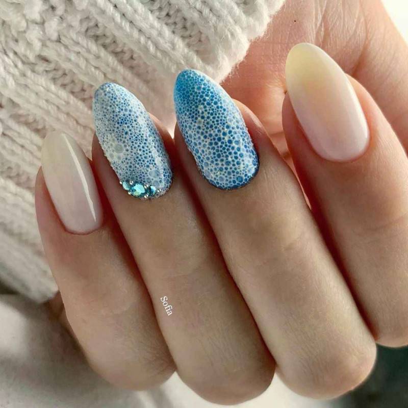 Весь 2023 было модным делать различные текстуры и объемные детали на ногтях. Зима не исключение и тренд остается актуальным и в зимнем сезоне. Можно добавить зимние оттенки цветов более холодные и темные. Текстуры камней и ледяные узоры очень популярны в этот период. Делать подобные дизайны не сложно, а смотрится такой маникюр оригинально, добавляя акцент к нюдовым оттенкам лака. Текстуры выполняют в различных техниках: с гель-лаками и в акварельной технике. В последнем варианте дизайн будет выглядеть воздушно, легко, с полупрозрачной дымкой, особенно если покрыть рисунок матовым топом.
